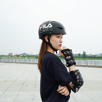 斐乐FILA头盔轮滑滑板车专业滑板头盔安全帽成人儿童头盔黑色S码