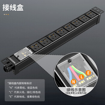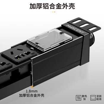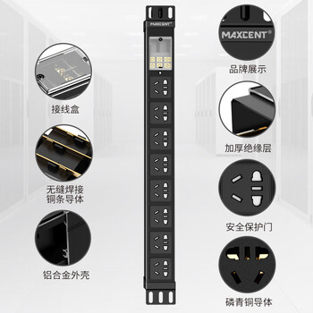 麦森特(MAXCENT)PDU机柜插座8位16A输入10A输出大功率插线板新国标工业插排新国标五孔自接线盒不带线MC086BD
