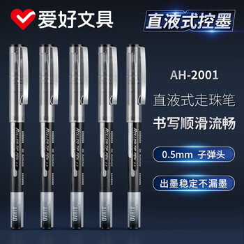 爱好(AIHAO)签字笔0.5黑色直液式走珠笔子弹头办公用水性签字笔学生考试笔12支 2001