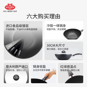巴拉利尼(BALLARINI)炒锅不粘锅进口煎炒两用轻便炒锅煤气灶专用30cm那不勒斯系列