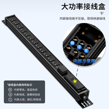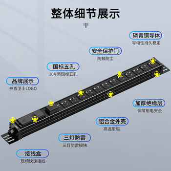 神盾卫士(SDWS)PDU机柜插座12位32A大功率插线板新国标三灯防雷竖装工业连接器接线盒不带线SV022BD