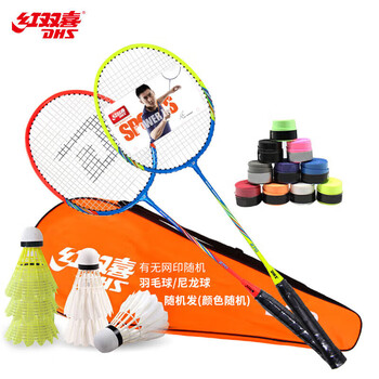 红双喜DHS羽毛球拍对拍2支装实惠训练双拍270炫彩色含手胶羽毛球