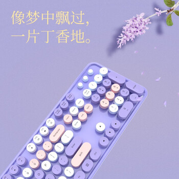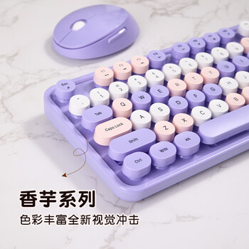 摩天手(Mofii) sweet无线复古朋克键鼠套装 办公键鼠套装 鼠标 电脑键盘 笔记本键盘 薰衣紫混彩