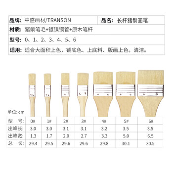 中盛画材 6#水粉油画丙烯颜料水彩画笔套装笔刷猪鬃手绘画墙绘板刷排刷底纹美术彩绘色彩全套排笔单支刷子美术写生