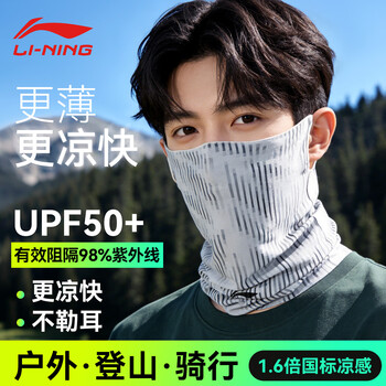 李宁(LI-NING)防晒面罩男骑行挂耳冰丝面巾口罩围脖套护颈夏季登山遮阳钓鱼头巾