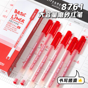 爱好(AIHAO)大容量中性笔0.5MM全针管红色中性笔笔芯笔身一体化签字笔办公用品12支/盒 8761