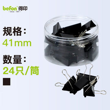 得印长尾夹24只41mm大号2#燕尾夹黑色多规格纸票夹金属铁夹子票据单据小夹子办公用品24只/筒 3913