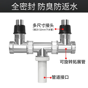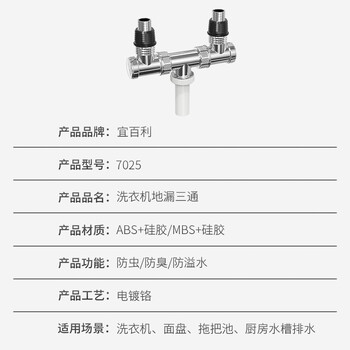 宜百利 洗衣机地漏三通接头下水三合一专用排水管浴室厨房阳台多功能防臭防溢水接头神器7025