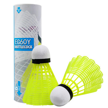 红双喜(DHS)耐打训练尼龙羽毛球塑料胶练习羽球6只装黄色EG60Y