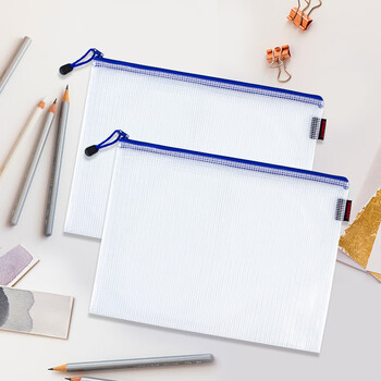 金得利2个A4塑料网格合同透明文件袋拉链档案袋资料袋子学生试卷收纳袋礼品袋手提袋办公用品文具FB8802