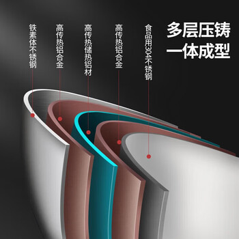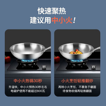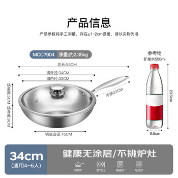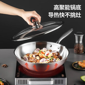 美厨(maxcook)304不锈钢炒锅 带盖锅具34cm 三层钢锅 电磁炉燃气炉通用MCC7904