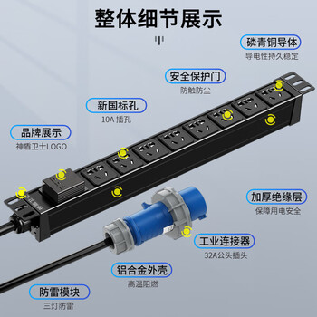 神盾卫士(SDWS)PDU机柜插座8位32A输入10A输出大功率插线板新国标三灯防雷工业连接器SG3823W