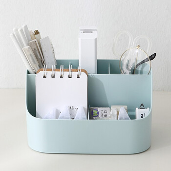 金得利5格笔筒收纳盒多功能高颜值儿童小学生文具办公桌面收纳宿舍办公用品笔桶分类储物盒子蓝色SN133