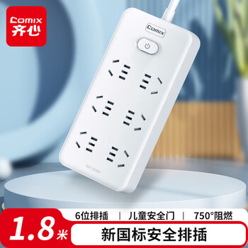 齐心(COMIX)新国标安全插座/插排/插线板/接线板/排插/拖线板 总控开关 儿童保护门 6位1.8米 LCE-3018
