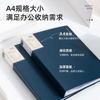 得力编码资料册A4/60页 彩色文件收纳册带页码活页插袋文件夹办公学生用品 海军蓝NS192