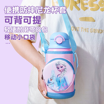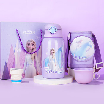 迪士尼(Disney)儿童保温杯礼盒双盖吸管婴儿水杯学生316不锈钢保温壶620ML艾莎