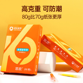 亚太森博(Asia Symbol) 凯欧80g A4复印纸 500张/包 5包/箱(2500张)(商用)(凯欧系列)