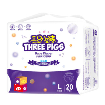 三只小猪3D轻薄拉拉裤L码20片试用装 超薄透气婴儿尿不湿尿片尿布(9-14KG)