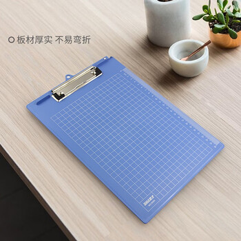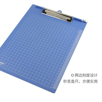 天章办公(TANGO)书写板夹A4金属强力夹塑料文件夹写字板报告夹 蓝色带刻度 办公文具用品