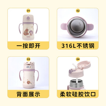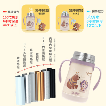 膳魔师(THERMOS)儿童吸管保温杯316L不锈钢把手学生杯幼儿园婴儿水杯上学TCKC