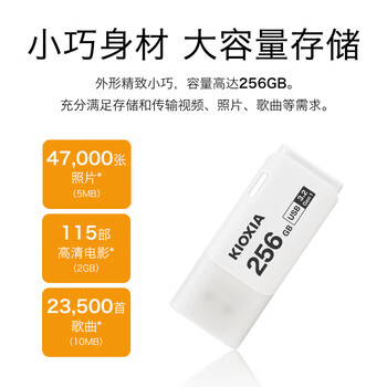 铠侠(Kioxia)256GB U盘 U301隼闪系列 白色 USB 3.2接口 时尚设计 高速传输 办公学习车载娱乐 兼容苹果系统