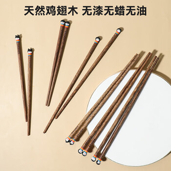 玉米(CORN) 鸡翅木儿童筷子 家用实木餐具家庭装 宝宝筷木头可爱卡通筷子