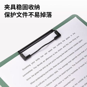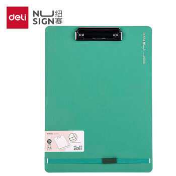 得力(deli)A4文件夹书写板夹金属强力夹 学生多功能写字垫板简约硬质会议夹绑带加固 办公用品 飞泉绿NS179