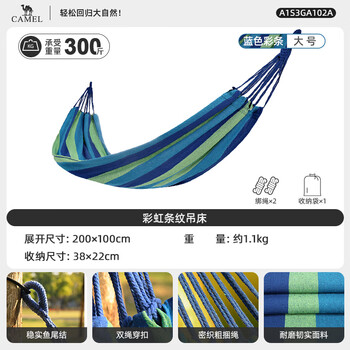 骆驼(CAMEL)户外吊床 成人防侧翻吊床秋千 A1S3GA102 蓝色彩条 (200*100)