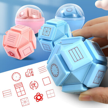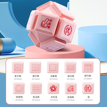 法拉蒙(faramon)十面魔方印章小学生升级款多功能教学纠错订正儿童印章田字格拼音钟表印章 粉色-简约装