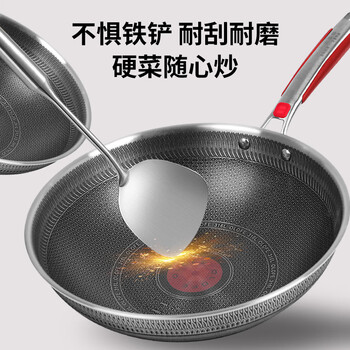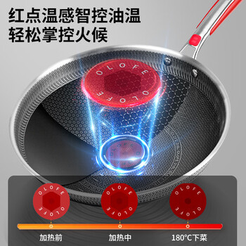 欧乐菲(OLOFE)316L不锈钢深炒锅平底蜂窝炒菜锅不粘爆炒烹饪炖菜锅具爱心32cm