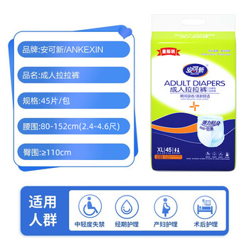 安可新成人拉拉裤XL45片(腰围:80-152cm)老人专用尿不湿产妇内裤纸尿裤