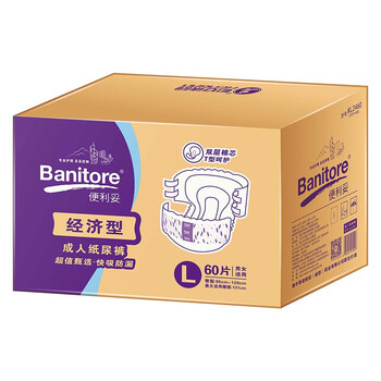 便利妥(Banitore)经济型成人纸尿裤 L码60片(臀围95-120cm) 防漏尿不湿透气恒安