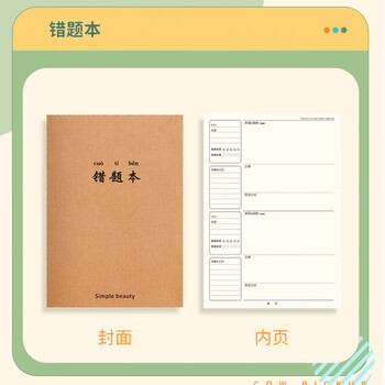 科朗鑫盛【开学必备】牛皮卡科目分类笔记本初中高中生学科笔记本错题记事本作业本套装 纠错本【3本装】