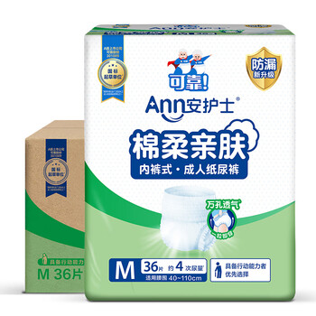 安护士棉柔亲肤成人拉拉裤M144片臀围80-105cm内裤型纸尿裤老年人尿不湿