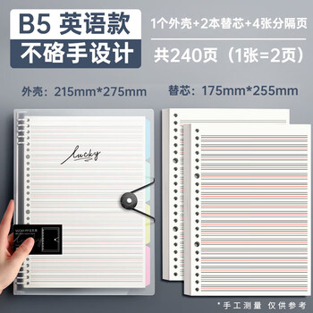 英语活页芯 B5 78g 60张 *2 活页夹笑脸扣-B5-透明白-4+4孔 *1