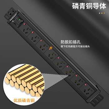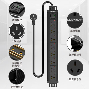 麦森特(MAXCENT)PDU机柜插座8位16A大功率插线板新国标防雷防脱插排可定制MC38656F