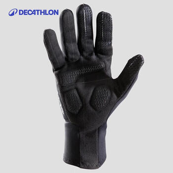 迪卡侬单车手套全指男女保暖抗震防水骑行装备黑色-秋季款 2358139 XL
