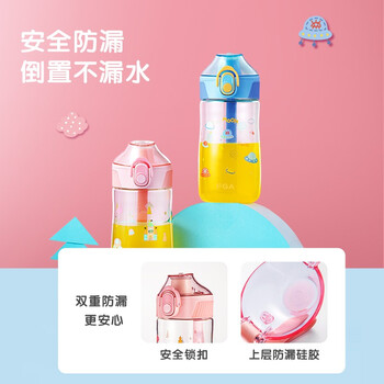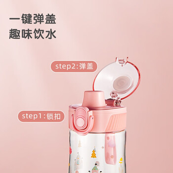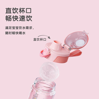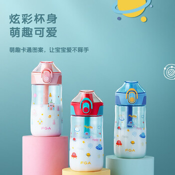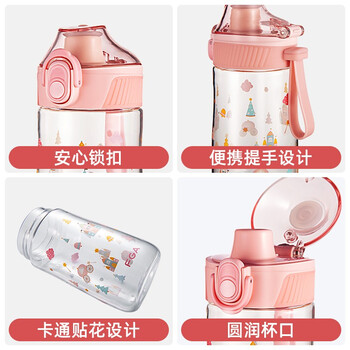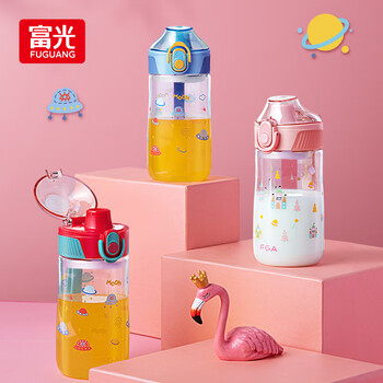 FGA富光儿童塑料水杯tritan学生便携提手运动卡通喝水杯子粉色480ml