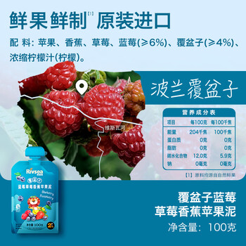 禾泱泱婴幼儿覆盆子蓝莓草莓香蕉苹果泥100g 进口宝宝果泥6月+