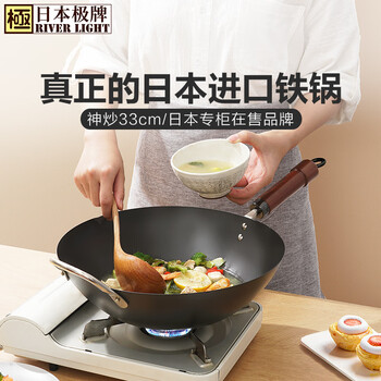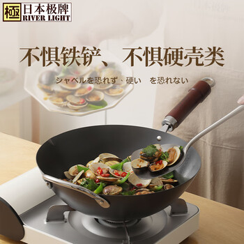 RIVER LIGHT日本超轻纯铁锅炒锅无涂层炒菜锅33cm家用熟铁锅燃气灶电磁炉通用