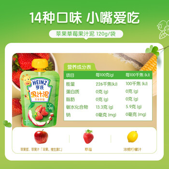 亨氏(Heinz) 苹果草莓水果泥120g婴儿宝宝营养辅食果泥果汁泥6月+