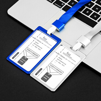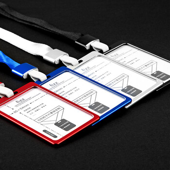 飞兹(fizz)铝合金竖式双面证件卡套(1个卡套+1根挂绳)/员工工作证胸牌/双面PVC护片 浅蓝FZ107007