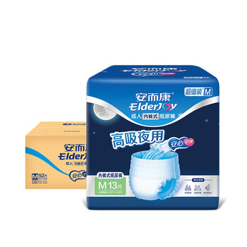 安而康(Elderjoy)超值装夜用型成人拉拉裤M52片臀围80-105cm内裤式成人纸尿裤老人