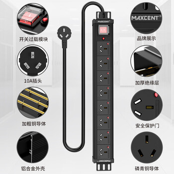 麦森特(MAXCENT)PDU机柜插座8位10A大功率插线板新国标开关过载防脱插排可定制MC38057F