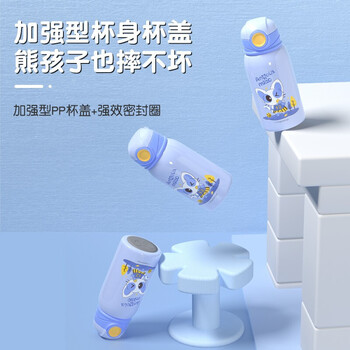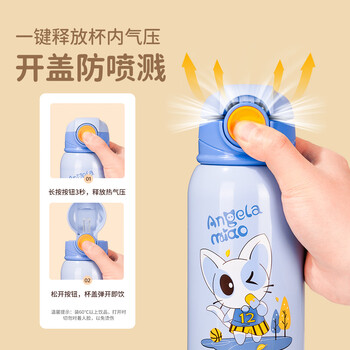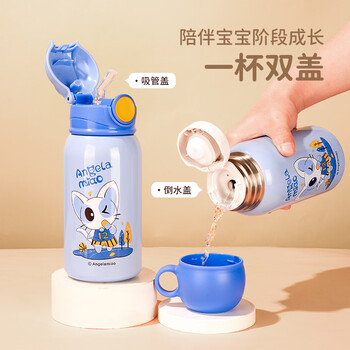 Angelamiao儿童保温杯带吸管儿童水杯316不锈钢双盖宝宝女学生保温壶550ML