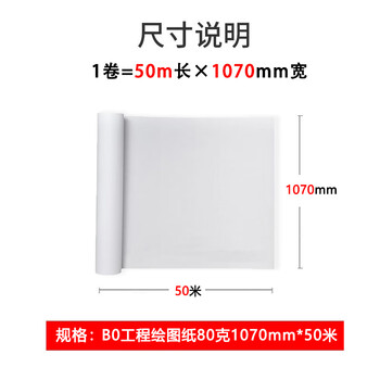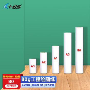 七级风B0绘图工程纸CAD机械作训材料打印纸80克1070mm*50米适用国产写真喷绘机绘图仪/惠普/佳能/爱普生