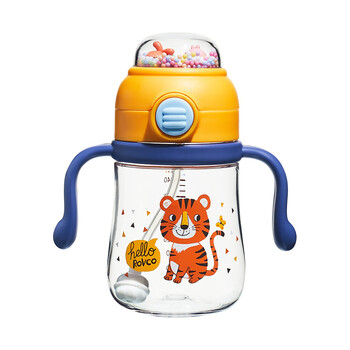 日康(rikang)水杯儿童 学饮杯 把手款宝宝吸管杯带重力球260ML 桔黄B1046