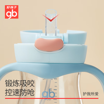 好孩子(gb)儿童水杯学饮杯学生吸管杯幼儿园上学水杯带手柄240mL-蓝色