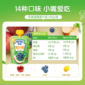 亨氏 (Heinz) 苹果蓝莓水果泥120g婴儿辅食宝宝辅食6月+