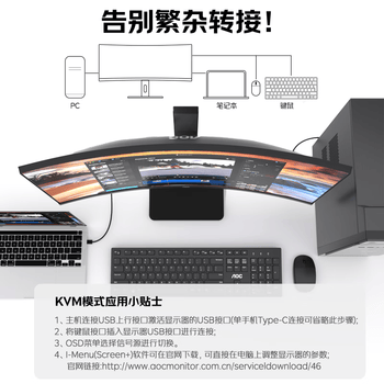 AOC显示器 34英寸超宽屏环绕式曲面带鱼屏Type-C 100Hz 设计剪辑娱乐游戏办公电脑显示屏CU34P2C